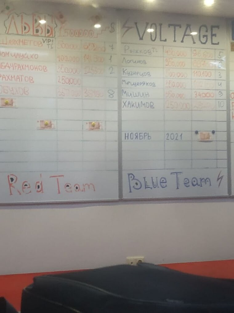 Сотрудники разделены на две команды, соревнующиеся между собой.