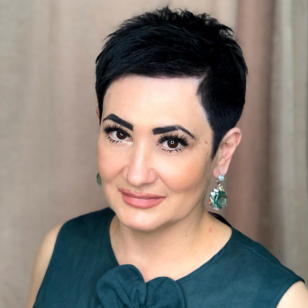 Современная стрижка пикси подходит не только молодым и ярким девушкам. Прическа замечательно смотрится на брюнетках даже после 60 лет. Особенность стрижки в ее универсальности и вариативности. То есть зрелая модница может легко поменять привычный вид стрижки, например, оставить длинную челку или выбрать укороченный вариант пикси.