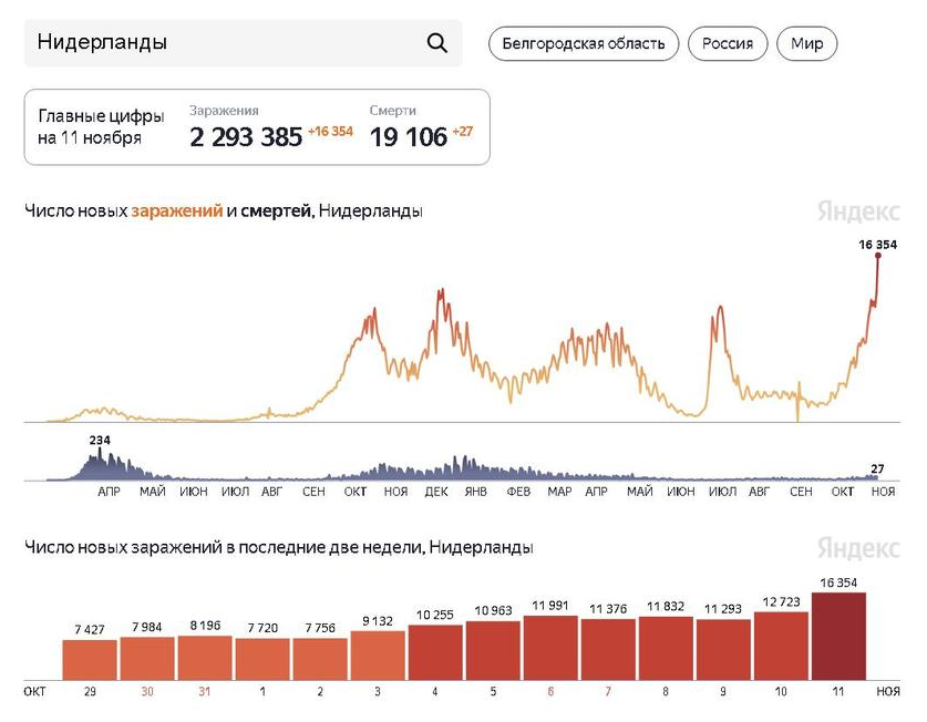 Причина ровно та же, что и в Германии – Голландия обновила рекорд по заболеваемости. Вчера там было выявлено 16 тыс. 354 случая заражения ковидом.