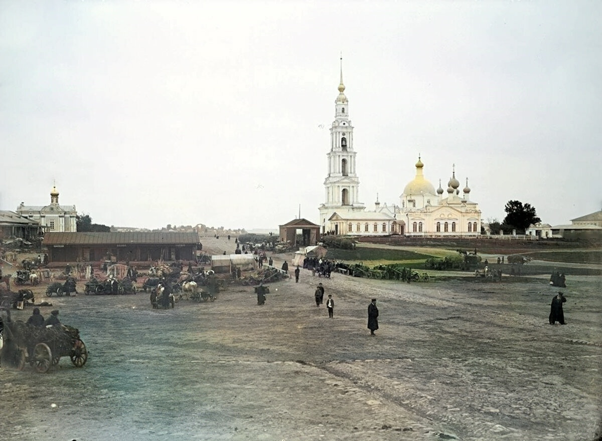 Колокольня построена в 1800 году при Никольском соборе (воздвигнут в 1694 году) бывшего Николо-Жабенского монастыря в стиле классицизма; имела пять ярусов, купол с главой и шпилем. Колокольня (высота 74,5 м) отстроена за 6 лет. Она имела 12 колоколов. Самый большой колокол в 1038 пудов отлит в 1895 году на деньги монастыря в честь восшествия на престол Николая II.