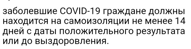 Режим самоизоляции для заболевших COVID-19