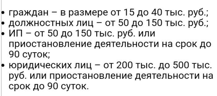 Данные нарушения влекут наложение административного штрафа на: