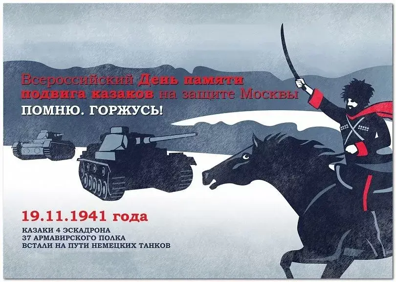21 ноября 2021 года Межрегиональный Совет Атаманов Казачьих Общин и Организаций совместно с Общероссийским общественным движением «Ветераны России» проводят мероприятие, посвященное 80-летию подвига казаков 4-го эскадрона 37-го Армавирского кавалерийского полка 50-й кубанской кавдивизии при защите Москвы возле деревни Федюково.