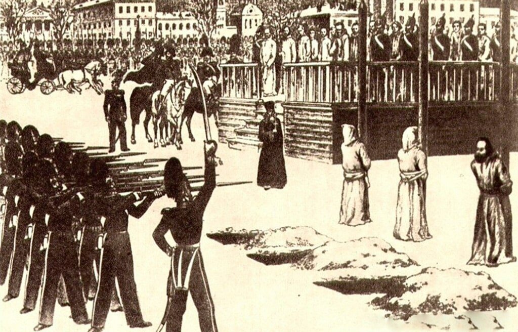 Казнь петрашевцев на рисунке Б. Покровского. Фото взято с ресурса Яндекс. Картинки