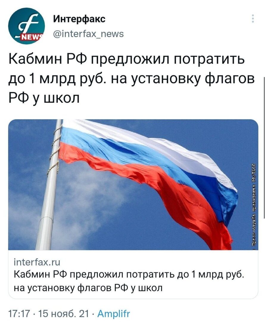 Создайте человеческие условия жизни для людей, комфортное проживание в стране, так школьники сами по десять флагов России повесят возле школы и за свой счет и с флагами ходить везде будут, гордясь страной своей. А миллиард на другие цели пустить можно!