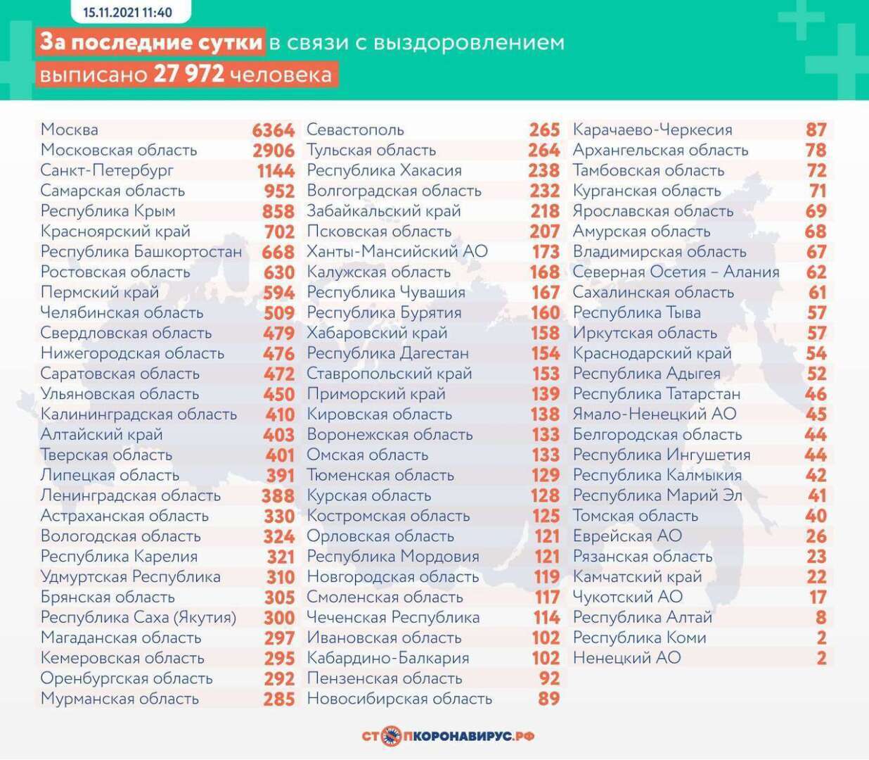На сегодня, 16.11.2021, в России всего зарегистрировано: