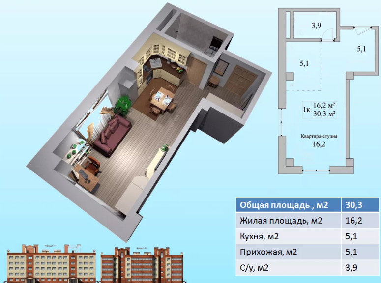 Российский законодатель не выделяет, что входит в жилую площадь квартиры, а что в общую. Таким образом, квартира – студия полностью состоит из полезной площади. Законодательством других стран к полезной относятся исключительно жилые помещения. Под полезной площадью многоквартирного дома в РФ определяется сумма всех жилых и подсобных помещений в доме.