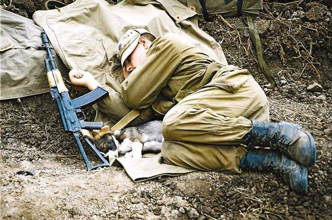 А вот снимок, где собака грустно отвернулась от кулька конфет: «Лёша – хозяин собаки - ушёл на задание и попал в плен. Его тело, полуразложившееся и обезображенное пытками, нам подбросили через неделю.