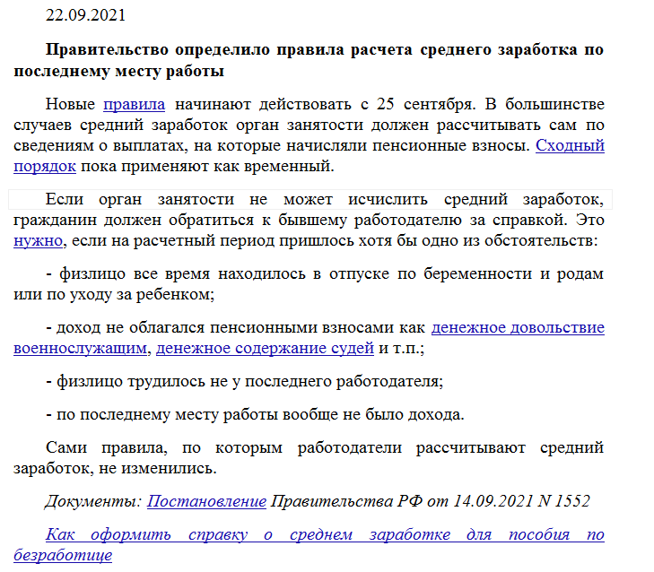 Правительство определило правила расчета среднего заработка по последнему месту работы