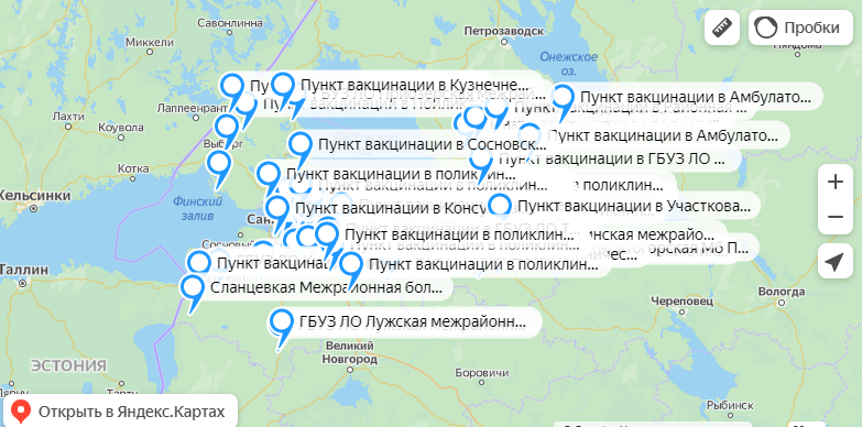 Карта где привиться Спутник Лайт в Ленинградской области, где сделать прививку Спутник Лайт в Петербурге