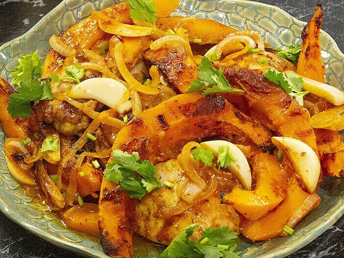 Хочу вам предложить отличную идею для ужина - запеченную тыкву с курицей. Блюдо простое в приготовлении из недорогих и доступных ингредиентов, поэтому вы запросто можете приготовить его сегодня и порадовать свою семью прекрасным и очень вкусным ужином.