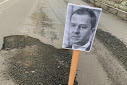На улице Красноборской в Ярославле в огромную яму на дороге воткнули портрет мэра Владимира Волкова. Надпись на ней гласит: «Спасибо мэру за дороги».