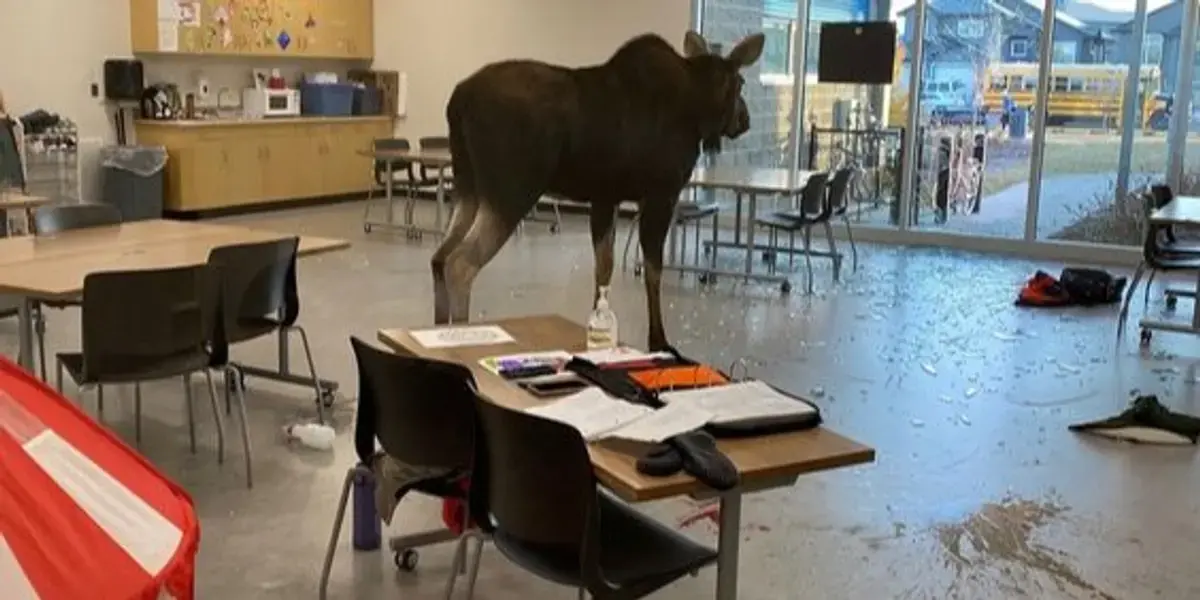 «Извините за опоздание». В Канаде лось пробил окно школы и вошел в класс