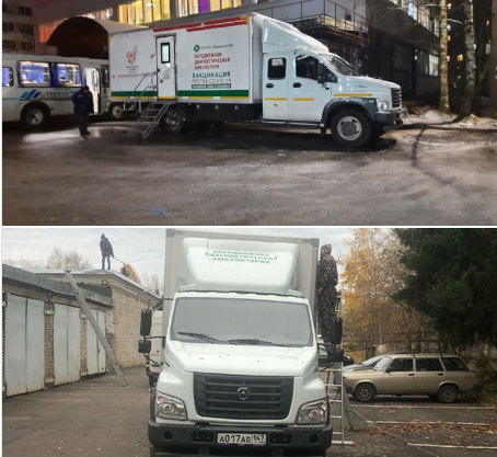 Преступники покусились на ГАЗон Next с фургоном, переоборудованным под прививочный пункт.