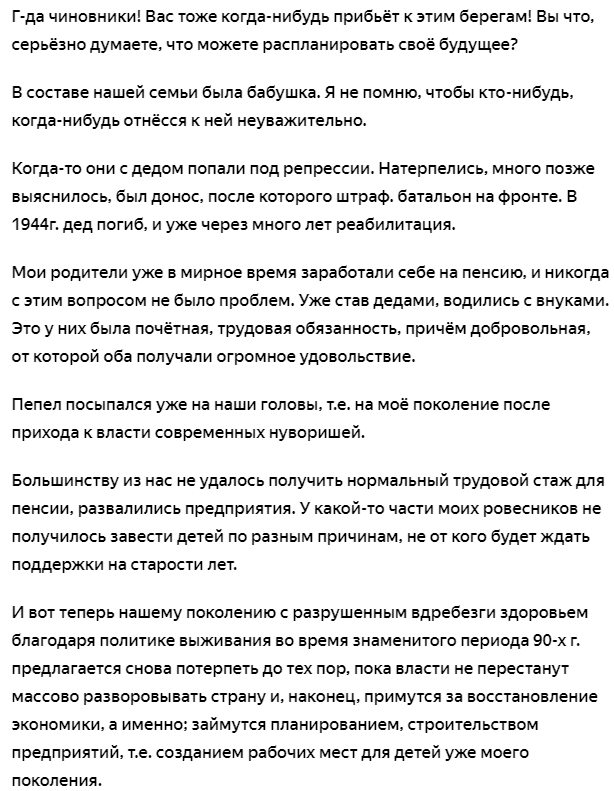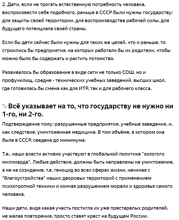 Это ж надо до такого договориться - наши дети, видя какая участь постигла... Пипец, не участь тебя постигла, ты сам себя в дерьмо закопал. Почему то я на пороге восьмого десятка и с внуками вожусь (хотя уже конечно возиться с 21 летним верзилой получается не очень, но все звонят, приезжают...) и дети крестов не ставят, своих внуков ждут, трудятся на благо России.