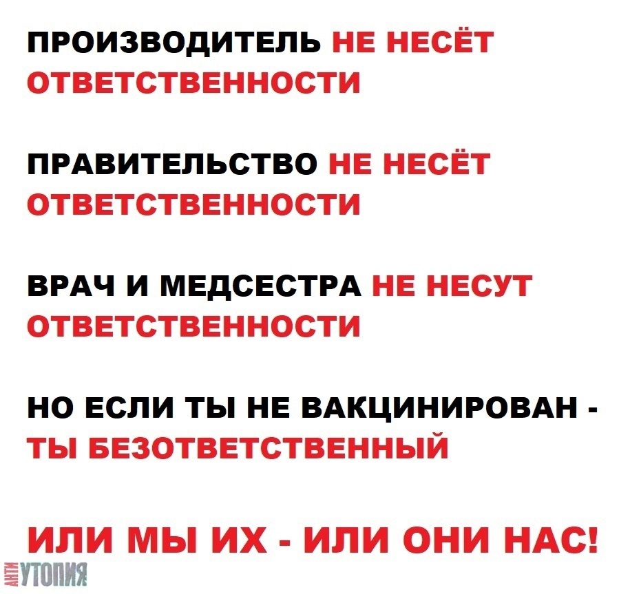 Бред всивой кобылы, а как же тогда абсолютно здоровые люди, которые не прививались и не болели ковидом, где гарантия, что эта вакцина не навредит их здоровью? И они получается уже не люди? Вопрос, а Конституцию тогда для чего писали и подписывали? Самая натуральная биологическая и экономическая война на лицо!!! Разделить народ на 2лагеря и абсолютно здоровых людей сделать изгоями и врагами народа - кошмар... И они хотят, чтоб Россия после этого имела какое то нормальное будущее? Это дорога в никуда!!!