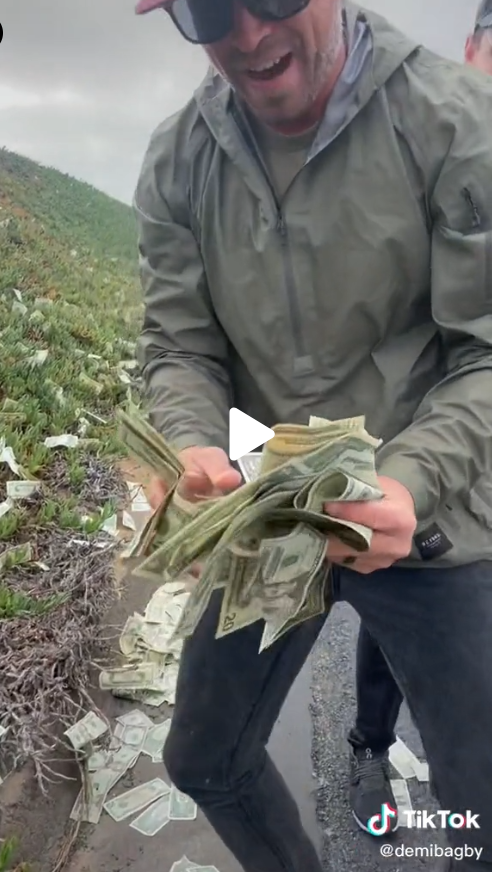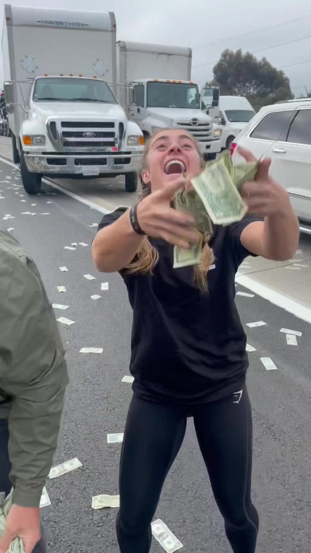 В соцсетях появилось видео, снятое свидетельницей происшествия по имени Деми Бэгби, которая показывает тысячи долларов, разбросанные по дороге и ликующих прохожих, собирающих банкноты.