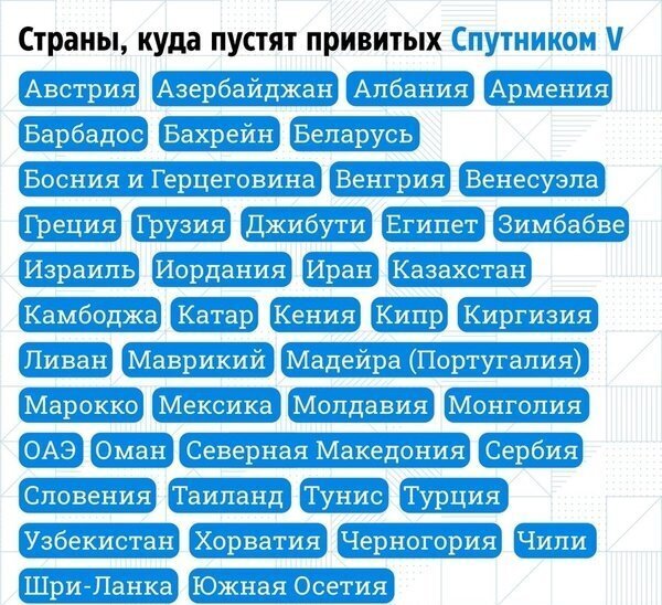 Список стран, доступных для туристов с прививкой "Спутник V"