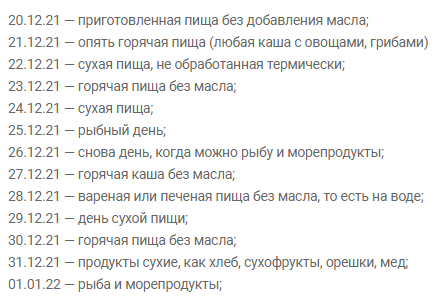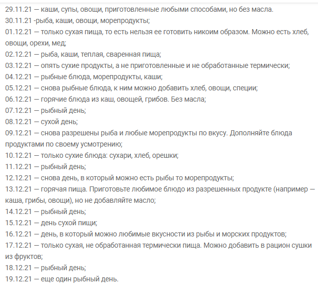 Что можно и нельзя есть в Рождественский пост, календарь по дням