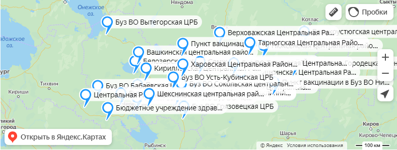 Карта где привиться Спутник Лайт в Вологодской области, где сделать прививку Спутник Лайт в Вологде: интерактивная карта