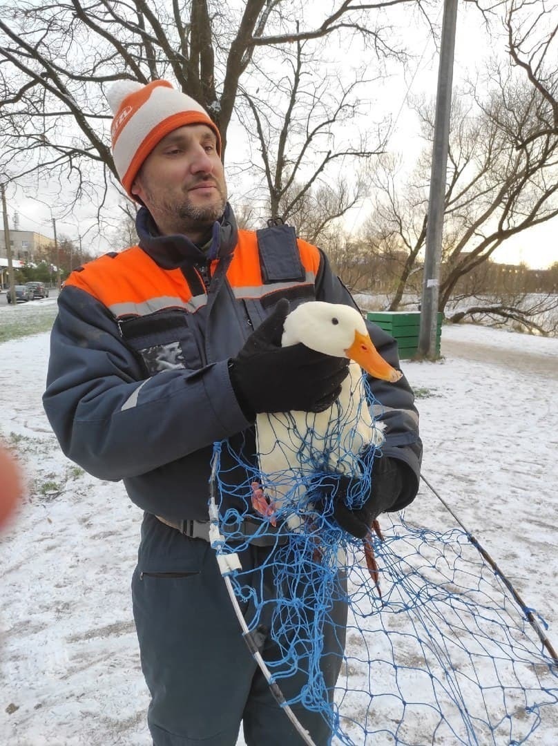 «Похолодание привело к появлению льда на водоемах, для слабых или травмированных уток это опасно: они могут застрять в полынье, пристыть и просто замерзнуть. Но мы успели починить гидрокостюмы и были готовы открыть сезон, — сообщила руководитель отряда добровольных спасателей „Кошкиспас“ Татьяна Скородумова. — В Петергофе выловили белоснежную домашнюю утку. В Шуваловском парке селезень примерз ко льду, а в Металлострое ослабленная птица застряла в полынье. Всего семь пернатых за два дня».