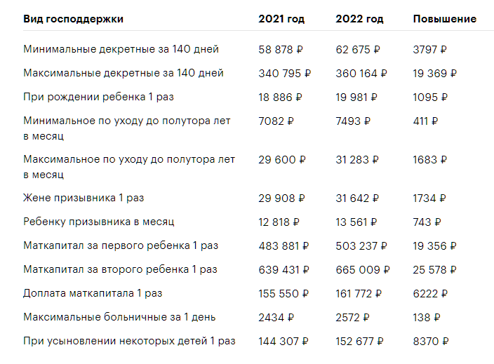 То есть если в регионе изменится прожиточный минимум, это повлияет на сумму. Например, в 2020 году в Москве выплата составляла 15 225 Р, в 2021 году — 15 450 Р. В 2022 пока неизвестно, но точно больше.