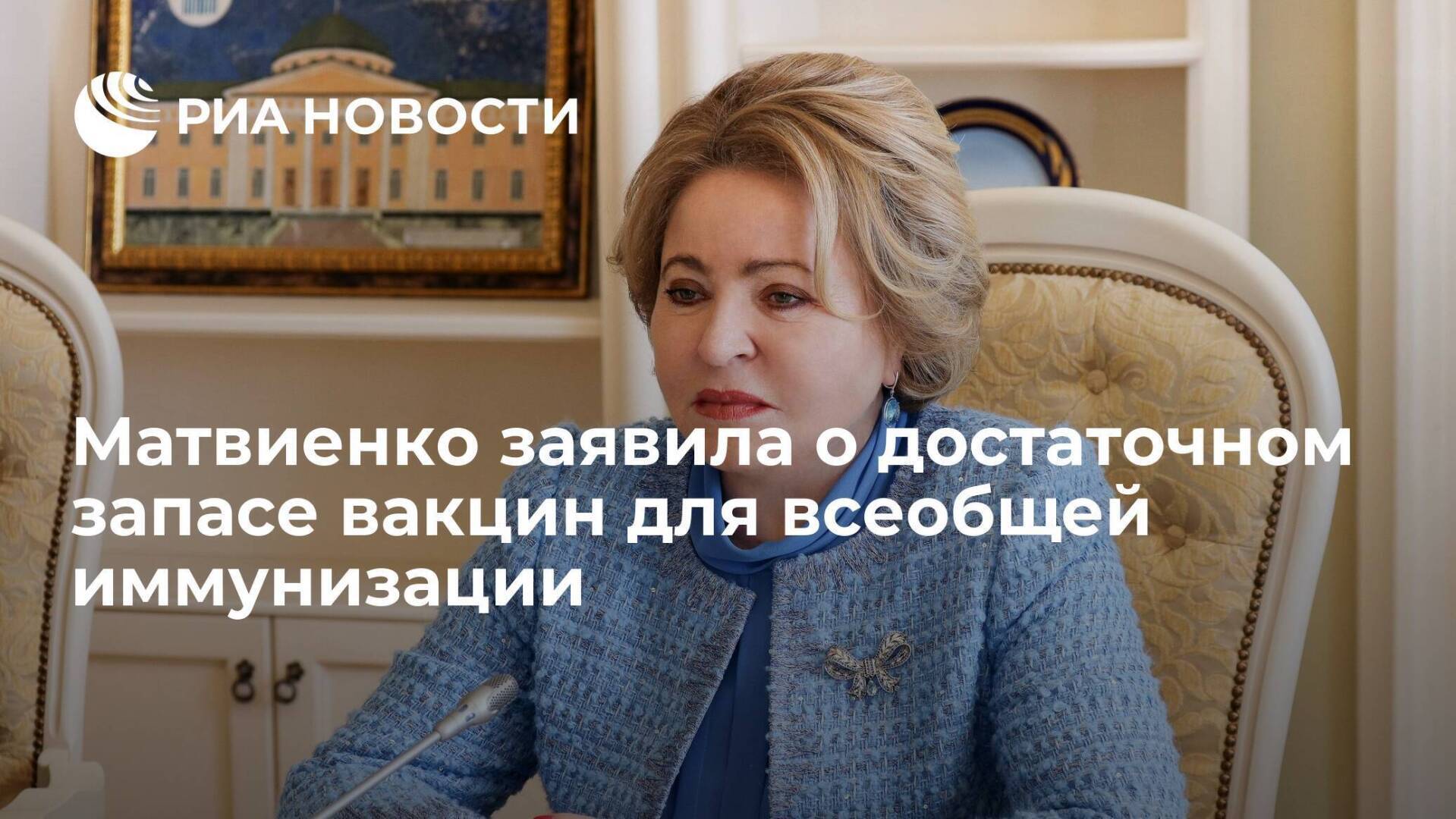 Матвиенко: В России достаточно вакцин для иммунизации всех ее жителей.