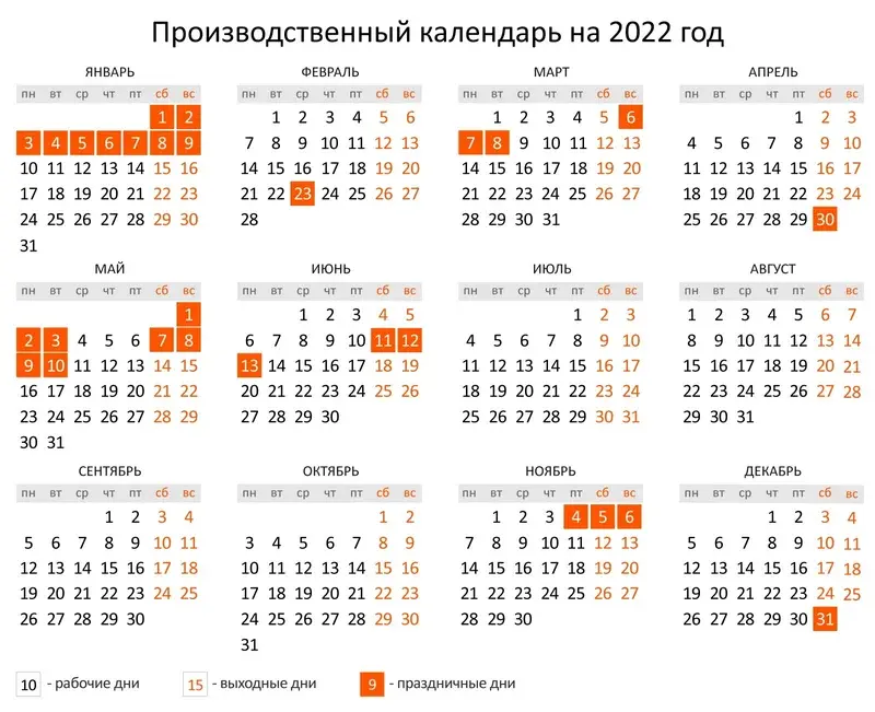 Согласно опубликованному Постановлению Правительства от 16 сентября 2021 г. № 1564, в 2022 году будет 244 рабочих дня, 91 выходной и 27 праздничных дней (из них 8 государственных праздников).