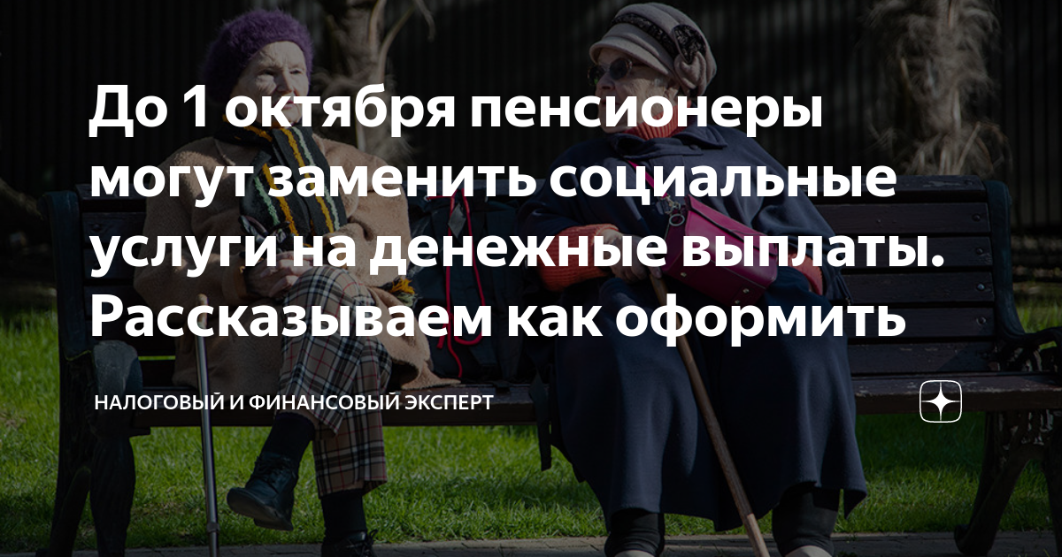 Источник: https://zen.yandex.ru/media/nalog_expert/do-1-oktiabria-pensionery-mogut-zamenit-socialnye-uslugi-na-denejnye-vyplaty-rasskazyvaem-kak-oformit-612f61a9ef7edc287e11bd29