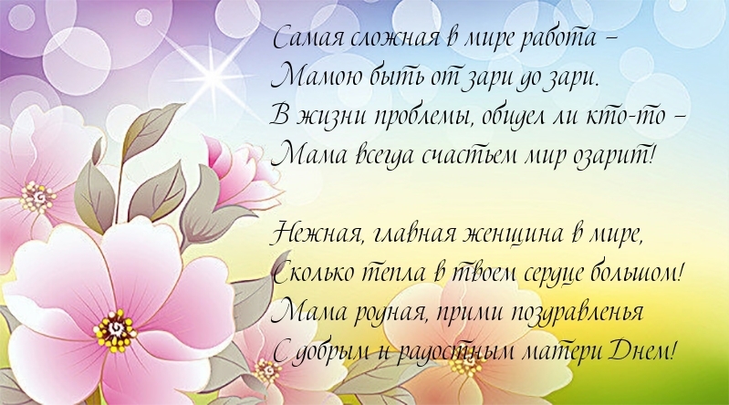 К этому дню готовятся от мала до велика. Покупаются подарки, выпекаются пироги и торты, и, конечно, выбираются красивые поздравления для мамы.