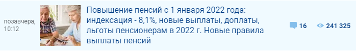 Иная статья данного автора на тему «Повышение пенсий с 1 января 2022 года: индексация - 8,1%, доплаты и надбавки, льготы пенсионерам и новые правила выплаты пенсий в 2022» собрала чуть меньше дочитываний, но они также внушительны.