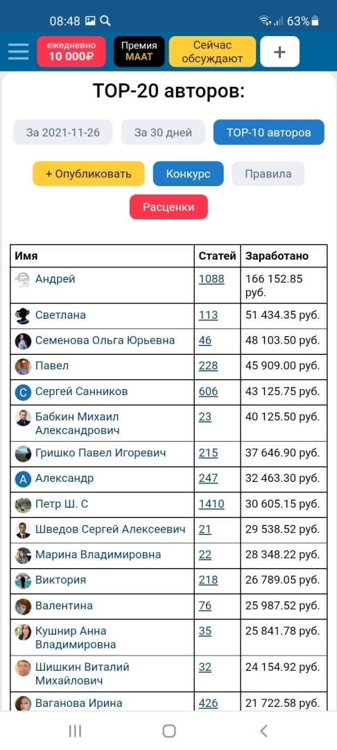 Денис, обратите внимание, сегодня лидирует эта тема , но под другим авторством. Вы уже успели поздравить автора ?