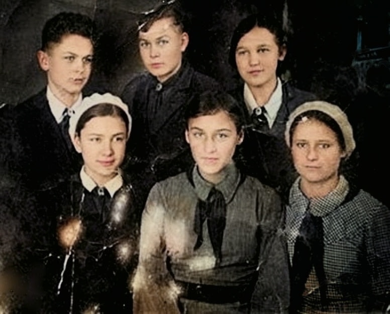 Ноябрина (ряд снизу, в центре) с сёстрами и братьями, 1930-е гг