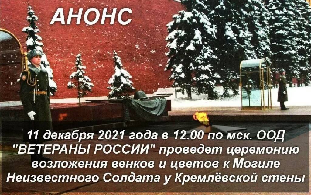 Призываем Ветеранские организации 11 декабря 2021 г. провести церемонию возложения цветов в регионах России!