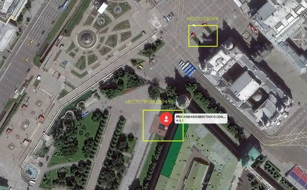 Сбор у Памятника маршалу Жукову на Манежной площади в 11:30 по мск.