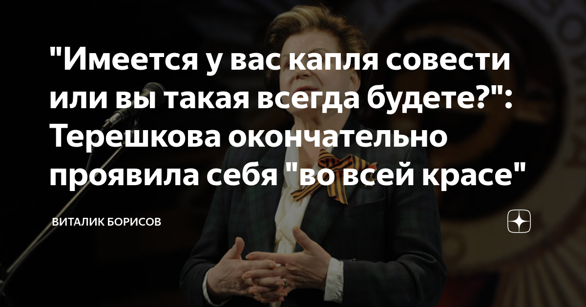 Источник: https://zen.yandex.ru/media/id/619cfb6aa0b31c395253d6f9/imeetsia-u-vas-kaplia-sovesti-ili-vy-takaia-vsegda-budete-tereshkova-okonchatelno-proiavila-sebia-vo-vsei-krase-61a08a6b9bfdd30bd0941267