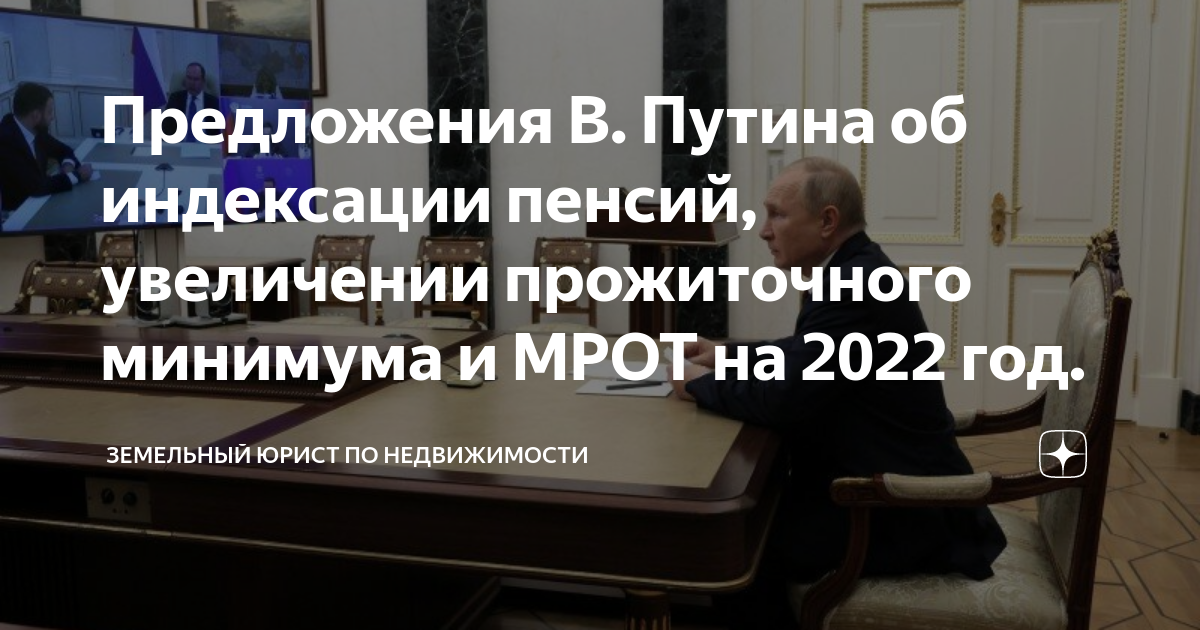 Предложения В. Путина об индексации пенсий, увеличении прожиточного минимума и МРОТ на 2022 год.