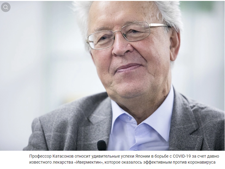 Профессор Катасонов относит удивительные успехи Японии в борьбе с COVID-19 за счёт давно известного лекарства «Ивермектин», которое оказалось эффективным против коронавируса. Ни маски, ни вакцинация, ни ограничения собраний большого количества людей (вспомним Олимпиаду без зрителей) не дали результата. По мнению профессора Катасонова, спасением стал препарат, разработанный совсем для других целей. Для лечения от коронавирусной инфекции он широко и успешно применяется также в Индии, Бангладеш и некоторых других странах. Катасонов убеждён, что мировая лекарственная мафия замалчивает эти успехи, чтобы заколоть человечество своими дорогими, бесполезными и опасными вакцинами.