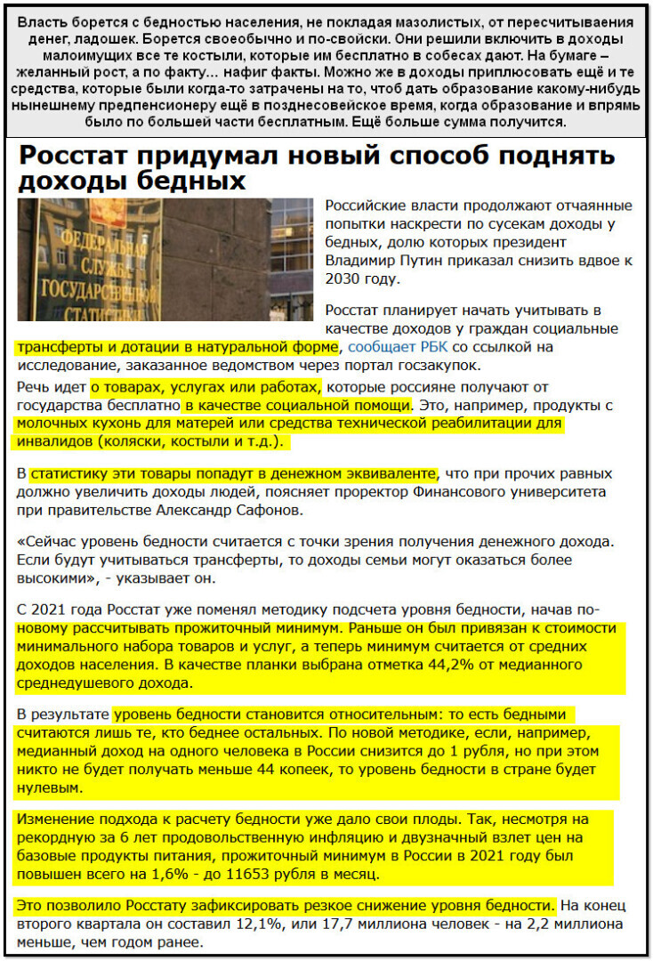У кого остались сомнения, что с бедностью они будут бороться совсем не путем повышения благосостояния народа? А приписками и подгонкой цифр, просто истреблением, что сейчас и происходит.