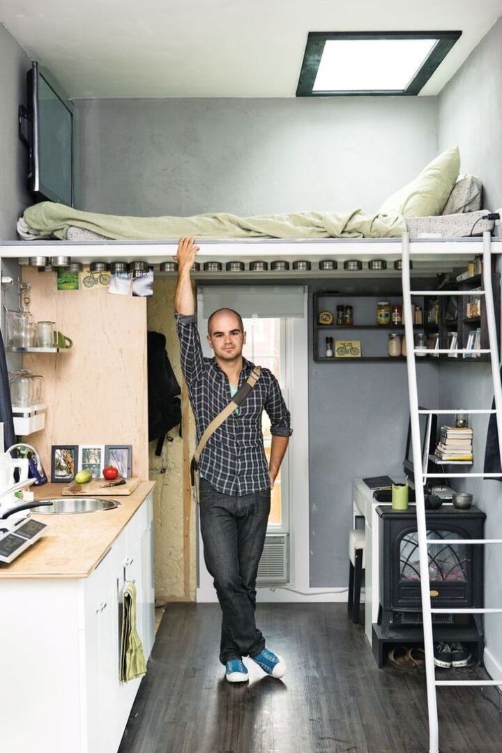 Спальня - наверху, рабочая зона - внизу