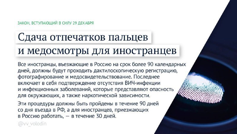 Иностранные граждане, взъезжающие в страну более чем на 90 дней, должны пройти регистрацию отпечатков пальцев, а также процедуру фотографирования и медосвидетельствования, в том числе тестирование на наличие ВИЧ-инфекции.