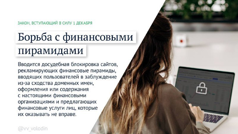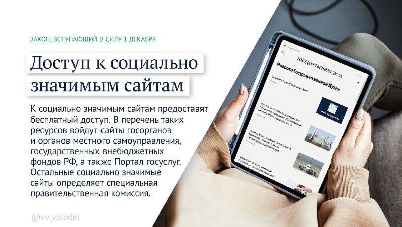 "В последнем месяце этого года заработают важные для наших граждан нововведения — станет легче зарегистрировать рождение ребенка, к социально значимым сайтам предоставят бесплатный доступ. Отдельно отмечу ряд законов, касающихся защиты людей в финансовой сфере", — написал Володин в своем Telegram-канале.