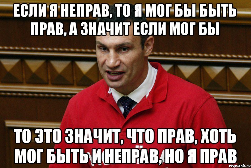 Когда человек прав, он говорит истину, но когда человек лжет - он не прав. Иногда все люди лгут, поэтому все люди не могут быть всегда правы, а их уверенность, что они всегда правы - есть ложь. Следовательно, те кто уверены, что они всегда правы - лгут, т.е. в этом случае они не правы, и следовательно они не всегда правы