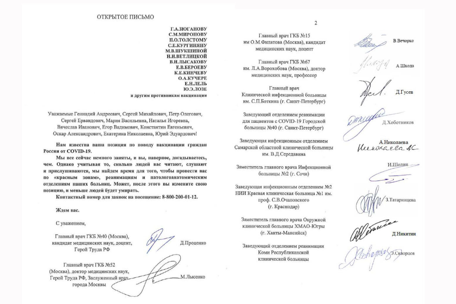 На открытое письмо врачей ковидных больниц к противникам вакцинации откликнулись медики, ученые и простые граждане из разных регионов.