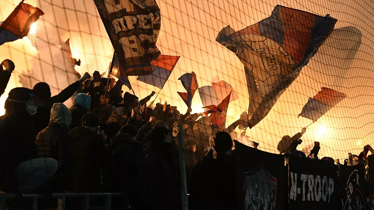 Возле входа на трибуну скопилось большое количество сотрудников ОМОНа и полиции, которые начали массово сопровождать фанатов, включая женщин, на обыск и размещать их в автозаках.