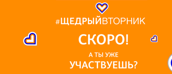Каждый, кто в этот день готов сделать доброе дело, может также стать ее участником. Сделать это просто: нужно зарегистрироваться на сайте инициативы щедрыйвторник. Рф, решить, какое хорошее дело сделать и кому помочь, провести свою акцию и рассказать об этом, используя интерактивную карту #ЩедрыйВторник или свои социальные сети.