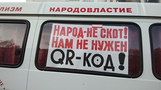 Курганские коммунисты запустили на улицы столицы Зауралья агитавтомобиль против введения QR-кодов. Так, машину с символикой КПРФ и плакатом «Народ — не скот. Нам не нужен QR-код» сегодня, припаркованной около обкома партии на улице Коли Мяготина, 116, увидел корреспондент Znak.com.