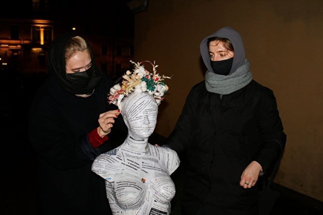 Напомним, акцию против гендерного насилия активистки Леля Нордик, Полина Титова, Марина Ширяева и Марина Сингх провели вечером 25 ноября. Они установили на набережной Мойки манекен, обклеили его новостными заголовками о насильственных преступлениях и надели на голову венок. «Этот памятник — не из гранита и не из бронзы. Поскольку наше государство считает, что женщины, пережившие насилие, не достойны гранита или бронзы. Государство считает, что женщины достойны гранита только в форме могильной плиты. Поэтому наш памятник, который мы воздвигаем сегодня — из слез и крови женщин, переживших насилие, или погибших от него», — говорится в манифесте акции.
