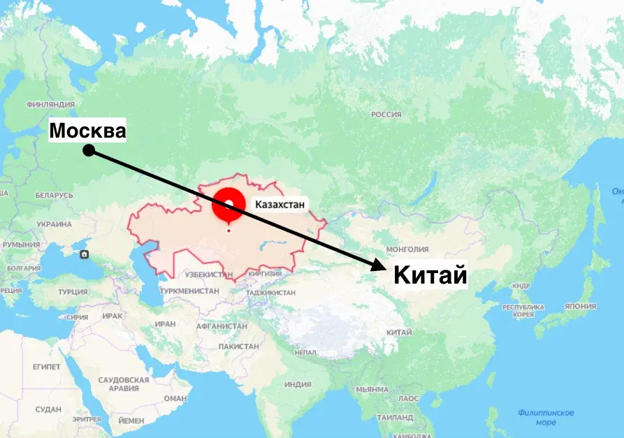 Если запустить навигатор по маршруту "Москва-Сиань" (это город в центральном Китае), то будет предложено несколько маршрутов и все они также будут затрагивать Казахскую Республику.