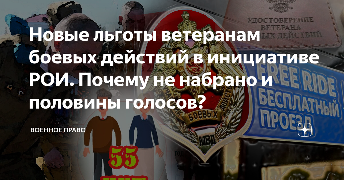 Источник: https://zen.yandex.ru/media/lifeitslife/novye-lgoty-veteranam-boevyh-deistvii-v-iniciative-roi-pochemu-ne-nabrano-i-poloviny-golosov-617e5ff1fc4ba2579f0493e1